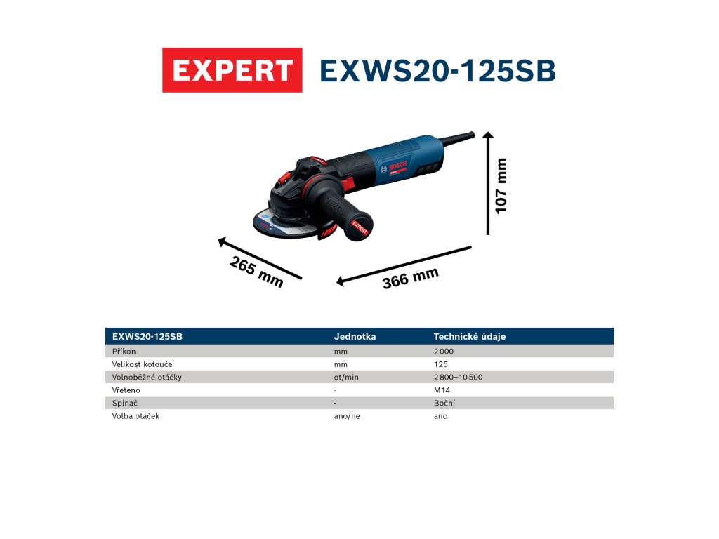 EXWS20-125SB EXPERT poskytuje maximální průmyslový výkon díky svému enormnímu příkonu 2 000 W.